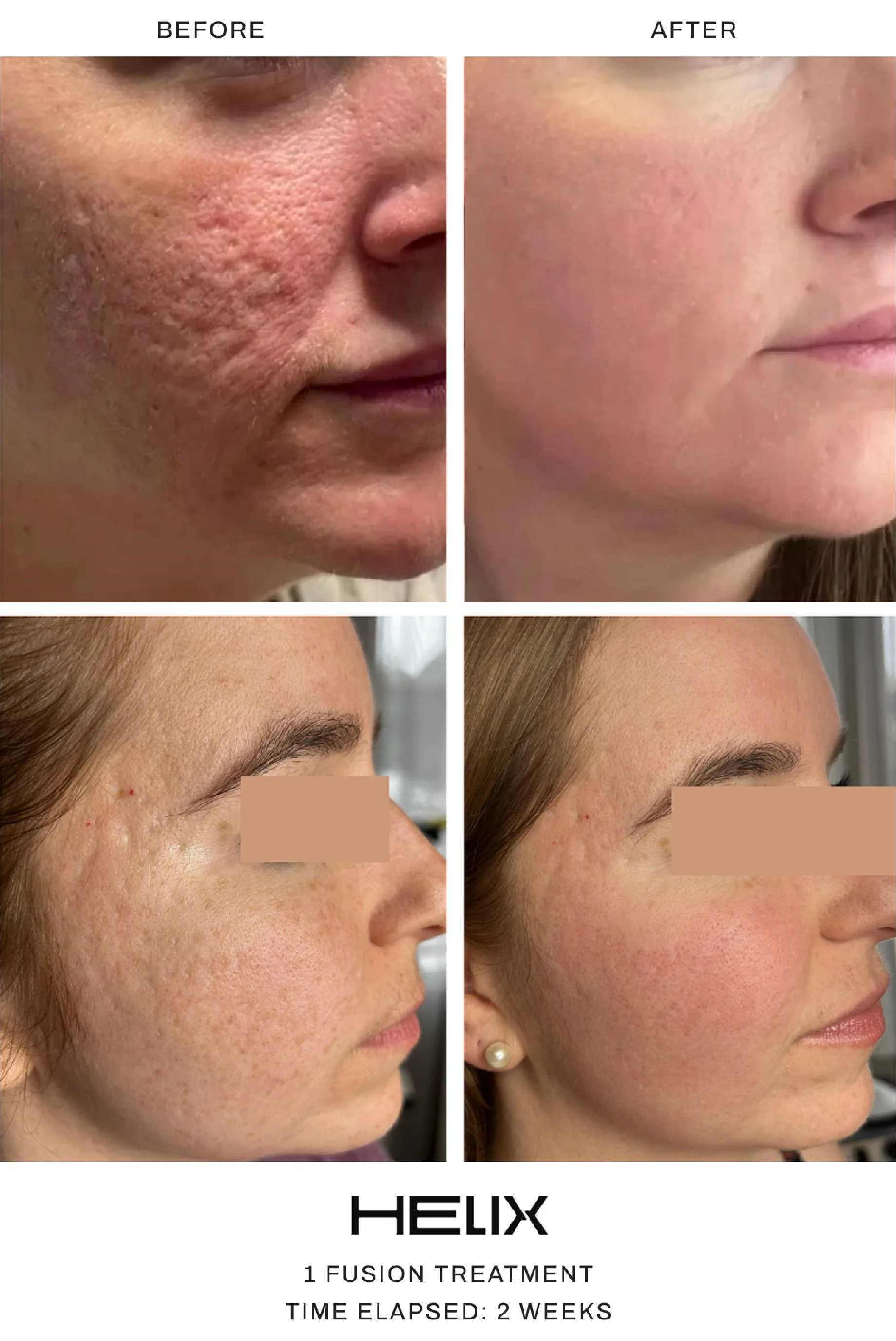 Helix Fusion combines advanced laser technology with targeted serums for hydration, brightening, and skin renewal. Using vortex infusion, it exfoliates and infuses antioxidants, peptides, and hyaluronic acid to leave your skin plump, radiant, and refreshed.